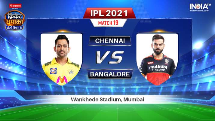 टेबल टॉपर रॉयल चैलेंजर्स बेंगलोर (आरसीबी) आईपीएल-14 वें सीजन के 19वें मैच में रविवार को यहां वानखेड़े स्टेडियम में दूसरे नंबर पर काबिज चेन्नई सुपर किंग्स (सीएसके) से भिड़ेगी।
