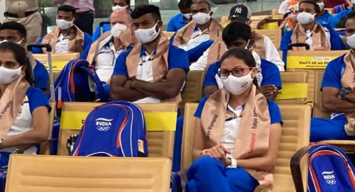 Indian athletes and officials from eight disciplines of archery, badminton, table tennis, hockey, judo, gymnastics, swimming and weightlifting landed in Tokyo on Sunday morning.